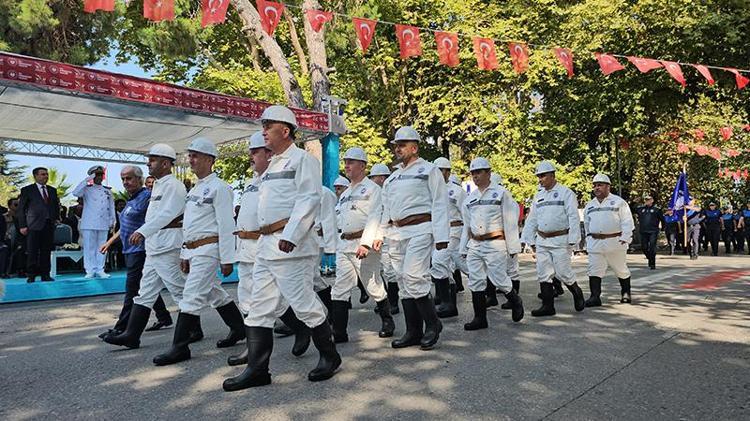 Zonguldak’ta 30 Ağustos Zafer Bayramı kutlamalarına Türkiye Taşkömürü Kurumu’nda (TTK) çalışan maden işçileri de katıldı. Kortej geçişinde iş kıyafetleriyle yürüyen madenciler vatandaşlardan alkış aldı. 19 yıldır annesi Yaşare Yılmaz (87) ile birlikte her ulusal bayrama katıldığını belirten Çetin Yılmaz (59) protokolü ‘Ne mutlu Türküm diyebilene’ yazısıyla selamladı.