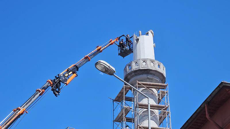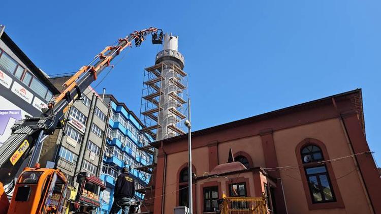 Zonguldak’ta caminin hasarlı ve dayanıksız çıkan minaresi yıkılıyor