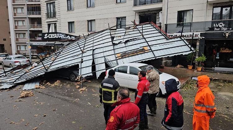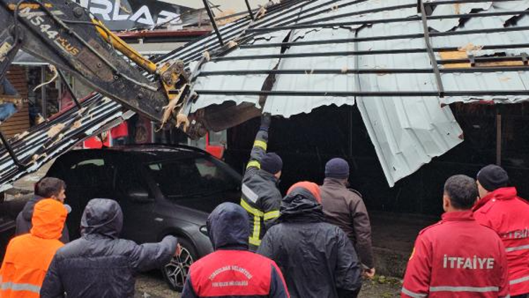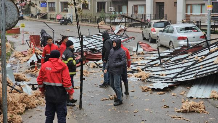 Savrularak düşen çatı, bazı evlerde, iş yerlerinde, araçlarda hasara yol açktı, bir elektrik diğeri de yıkıldı.