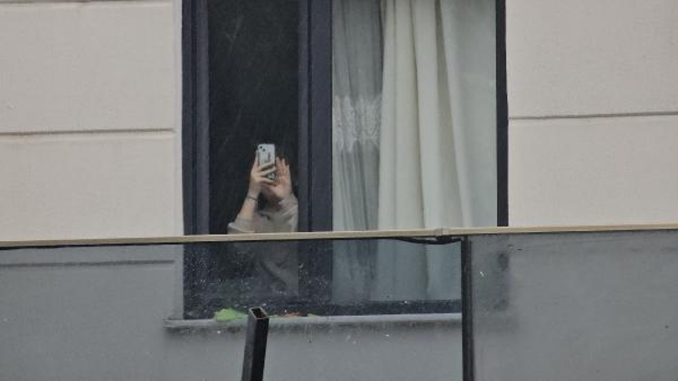 Çatının düştüğü yolun kenarında bulunan evdekiler, yaşananları cep telefonlarıyla camdan, kaydetti.