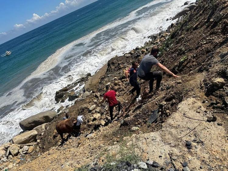 Hayvan kesimi için bekleyen Metin Kayabaşı, “Burada hayvan kesime getirilirken arkadaşlar ellerinden kaçırdılar. Denize doğru hayvan kaçtı. Kayadan denize atladı boğa. Orada dalga olduğu için karaya çıkamadı. Çıkamayacağı için sahil güvenliğe haber verildi. Sahil güvenlik gelene kadar yarım saat içinde boğa, 200 metre yüzüp karaya çıktı. İtfaiye, kıyıdan yukarıya çekti hayvanı" dedi.