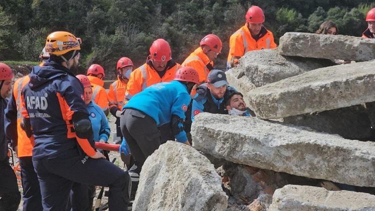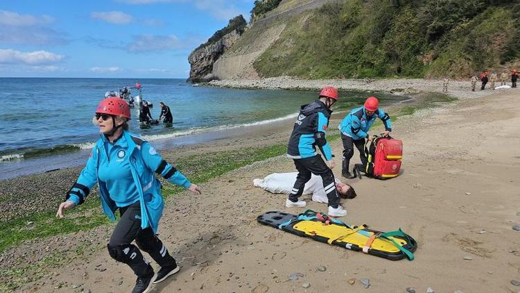 Dere yatağına düşen bir otomobilden dereye savrulan ve araçta mahsur kalanlara yönelik de UMKE ve itfaiye ekipleri kurtarma çalışması yürüttü. Senaryo gereği sel sularıyla denize sürüklenenleri dalgıç polisler kurtarırken sahile vuranlara da sağlık ekipleri müdahalede bulundu. Jandarma Arama Kurtarma timi dalgıçları ise dere içinde çubuklarla kayıp kişileri arama çalışması yürüttü.