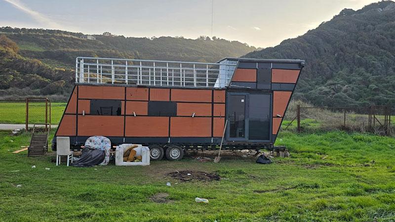 Mudanya’nın Eğerce Mahallesi’nde hafta sonları konaklamak amacıyla M.E.’ye (52) ait olan tekerlekli Tiny House’un yerinde olmadığını fark eden mahalle sakinleri durumu Eğerce Mahalle Muhtarlığına bildirdi.