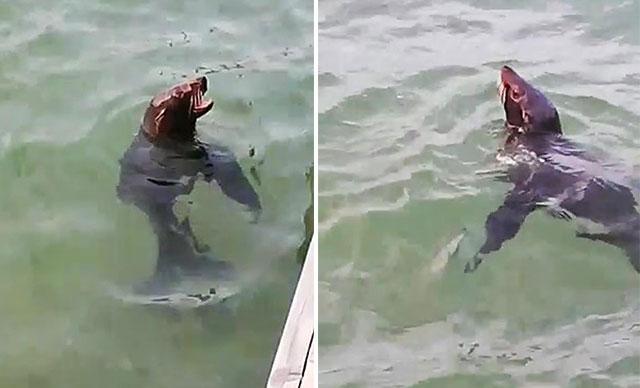 Muğla'nın Bodrum ilçesinde bulunan yunus gösteri merkezinden kaçan kürklü fok vatandaşlar tarafından görüntülendi.