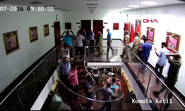 Görüntülerde, sabaha karşı darbe girişiminin püskürtülmesinin ardından ise FETÖ mensuplarının karargah önüne gelen polisle çatışma ve teslim alınma anları yer alıyor.