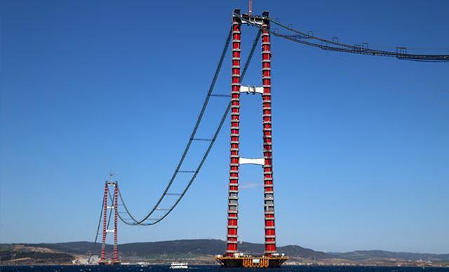 1915 Çanakkale Köprüsü'nde kedi yolunun tamamlanmasıyla başlanan ana kabloların montajı devam ediyor. Köprünün ana halatlarını oluşturacak 296 çelik kablodan 92'si bir kıtadan diğer kıtaya çekildi. Gemlik ve Gölcük'teki fabrikalarda üretilen tabliye bloklarından 33'üncüsü de Gelibolu Sütlüce'deki şantiye alanına ulaştı. Çelik kablolarda kullanılan 162 bin kilometre tel uzunluğunun, dünyanın etrafını 4 kez dolaşabilecek kadar olduğu öğrenildi. 18 Mart 2022'de tamamlanarak hizmete açılacak köprü sayesinde, Çanakkale Boğazı 6 dakika gibi kısa bir sürede geçilebilecek.
