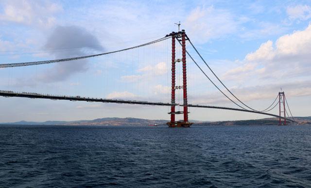 Cumhurbaşkanı Recep Tayyip Erdoğan tarafından 18 Mart 2017'de temeli atılan '1915 Çanakkale Köprüsü'nün büyük bölümü, 5 bine yakın çalışanla 24 saat aralıksız devam eden çalışmalar sonucu 4,5 yılda tamamlandı. 2023 metrelik orta açıklığıyla Cumhuriyet'in 100'üncü kuruluş yılını simgelediği gibi 'dünyanın en uzun orta açıklığa sahip asma köprüsü unvanı'nı da alacak 1915 Çanakkale Köprüsü'nün 318 metre yüksekliğindeki kuleleri ise Çanakkale Deniz Zaferi'nin kazanıldığı tarih olan 18 Mart'ı simgeliyor. Köprünün araç geçiş yolunu oluşturacak toplam 87 tabliye blokundan 81'inin montajı tamamlandı. Geriye sadece 6 tabliye montajı kaldı. Asya ve Avrupa yakalarındaki kule ayaklarına getirilen ve birbirine kaynatılan 3'er tabliye bloğunun vinçle yukarıya kaldırılması sonrasında köprünün araç geçiş yolu Avrupa ve Asya kıtalarını birbirine bağlamış olacak. 1915 Çanakkale Köprüsü'nün açılışı da Zafer'in 107'nci yıl dönümünün kutlanacağı 18 Mart 2022'de yapılacak. Çanakkale Boğazı, artık 6 dakika gibi kısa sürede kesintisiz ulaşım imkanı sunacak.
