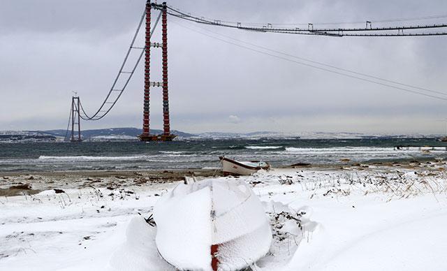 1915 Çanakkale Köprüsü'nde kar manzaraları
