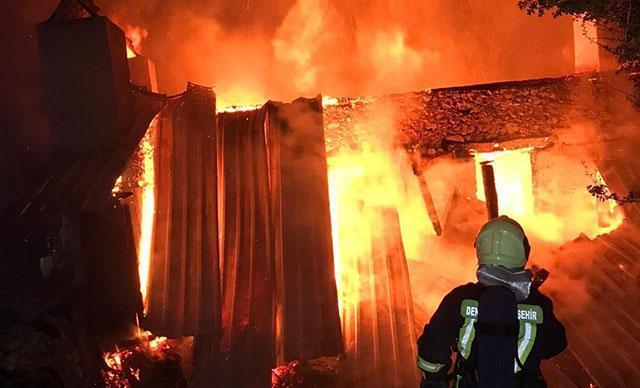 Muğla'nın Menteşe ilçesindeki 2 katlı evde, elektrik kontağından çıkan yangın, itfaiye ekiplerinin 3,5 saat süren müdahalesiyle söndürüldü. Ev sahibi ile eşinin yangın başlarken dışarı çıkıp, kurtulduğu alevler, binayı kül etti.