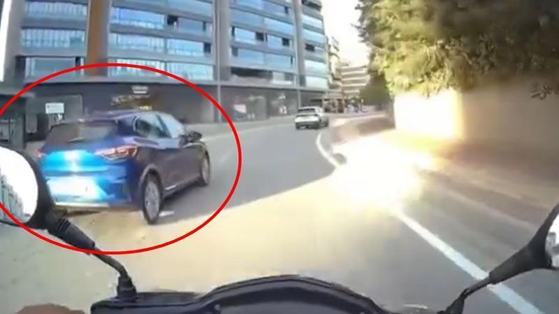 Sabah saatlerinde Nilüfer ilçesi Ataevler Mahallesi’nde seyir halinde olan otomobilin sürücüsü, virajı döndüğü sırada bir motosikletlinin şeridine geçti. Uyarmak için korna çalan motosikletli ile otomobilin sürücüsü arasında tartışma çıktı. Trafik ışıklarında durup birbirlerine bağıran taraflar, daha sonra yollarına devam etti. O anlar motosikletin sürücüsünün kask kamerasına yansıdı.