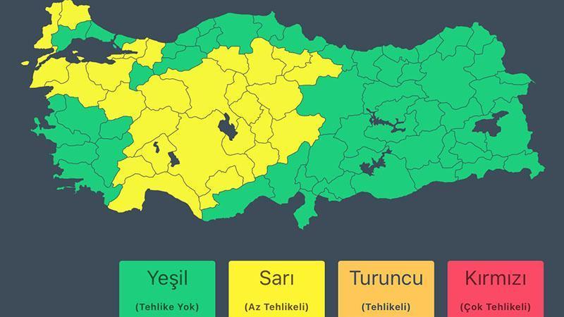 İçişleri Bakanlığı, 28 ilde gök gürültülü sağanak ve fırtına nedeniyle 'sarı uyarı' verildiğini belirterek, meydana gelebilecek olumsuzluklara karşı dikkatli ve tedbirli olunması uyarısında bulundu.
