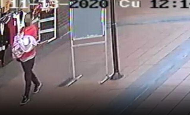 Annenin bebeğini tuvalete doğru kucağında taşıdığı anlar, güvenlik kameralarınca görüntülendi.