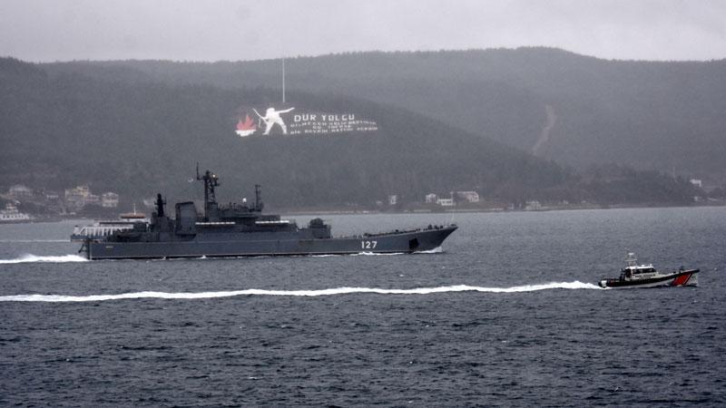 Rus donanmasına ait 3 savaş gemisi bugün saat 10.00 sıralarında Ege Denizi'nden peş peşe Çanakkale Boğazı'na giriş yaptı. 112 metre uzunluğundaki 127 borda numaralı Minsk, 120 metre uzunluğunda 102 borda numaralı Kaliningrad ve 112 metre uzunluğunda, 130 borda numaralı ’Korolev, saat 11.30 sıralarında Çanakkale önlerinde oldu. Kilitbahir Kalesi ile Kilitbahir köyü dağında bulunan 'Dur Yolcu' yazısının önünden geçen Rus savaş gemileri, boğazın manevra yapılması en güç noktası olan Nara Burnu'nu döndükten sonra Marmara Denizi'ne doğru yol aldı.