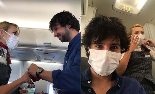 Mühendis Efe Güngör, Türk Hava Yolları'nda (THY) kabin memuru olarak çalışan kız arkadaşı Gamze Akpınar'a 30 bin feet'te evlilik teklif etti.