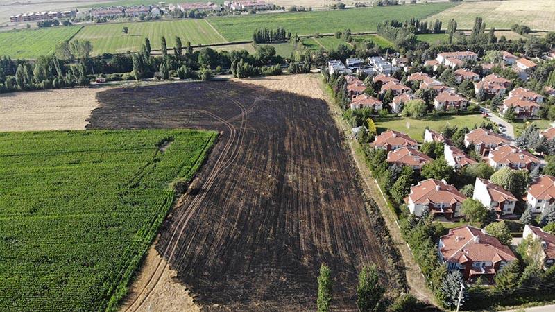 Bugün akşam saatlerinde Tepebaşı ilçesine bağlı Sazova Mahallesi’nde Ahmet Erer’e ait arpa ekili 45 dönüm tarlada yangın çıktı. Henüz belirlenemeyen yangında alevler, rüzgarin da etkisiyle kısa sürede yayıldı. arladaki yangından yükselen dumanlar kentin bir çok yerinden görüldü. Yangını görenlerin ihbarı üzerine gelen 2 itfaiye aracı ve Orman Bölge Müdürlüğü’ne bağlı arazöz ile alevlere müdahale etti. Tarladaki yangından yükselen dumanlar kentin bir çok yerinden görüldü. Ekipler alevlerin tarlanın yanındaki siteye sıçraması engelleyerek yangını söndürdü. Yoğun çabaya rağmen yangında yaklaşık 40 dönüm arpa ekili arazi yanarak kül oldu.