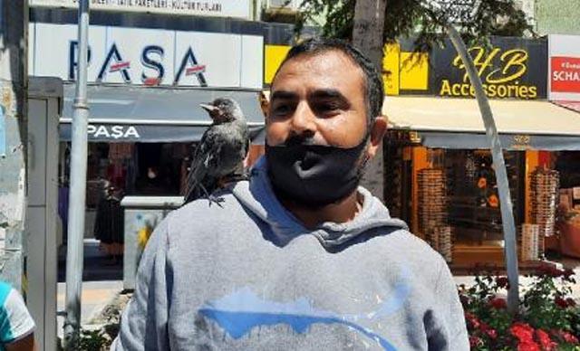 4 aydır beslediği karga yavrusu omzundan inmiyor