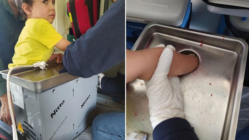 4 yaşındaki Tuğra, elini kaptırdığı kıyma makinesiyle hastaneye götürüldü
