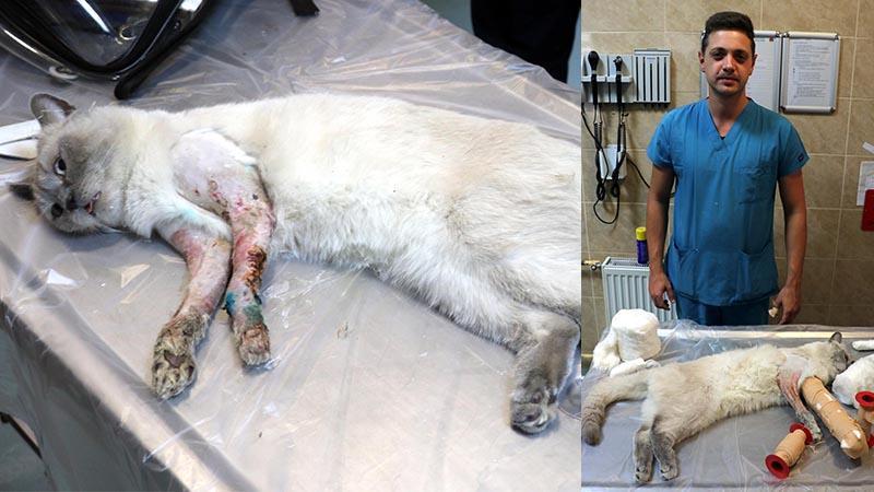 4'üncü kattan düşünce bacakları kırılan kediye protez takıldı