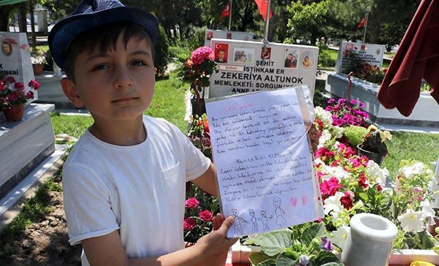 Şehit Altunok’un oğlu Ahmet Eren, babasına yazdığı mektup duygulandırdı.
