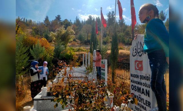 Karaman'ın Ermenek ilçesinde 7 yıl önce linyit ocağını su basması sonucu yaşamını yitiren 18 madenci mezarları başında anıldı. Maden işçisi babası Osman Çoksöyler öldüğünde 3 aylık olan Kübra Çoksöyler (7), babasını çok özlediğini belirterek, ''Babamı görmedim ama çok özledim. Babamı çok seviyorum'' dedi.