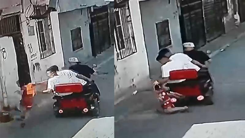 Adana'da elektrikli triportörlü 3 kişi, sokakta yürüyen 8 yaşındaki H.İ.D.'yi, üzerindeki Galatasaray formasından tutup 2 metre sürükledi. Bu anlar bir iş yerinin güvenlik kamerasına yansıdı.