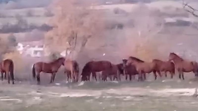 Bolu'da At Yaylası bölgesinde bulunan yılkı atları, yiyecek aramak için şehir merkezine indi.
