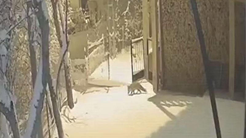 Aç kalıp, köye inen yaban hayvanları kamerada