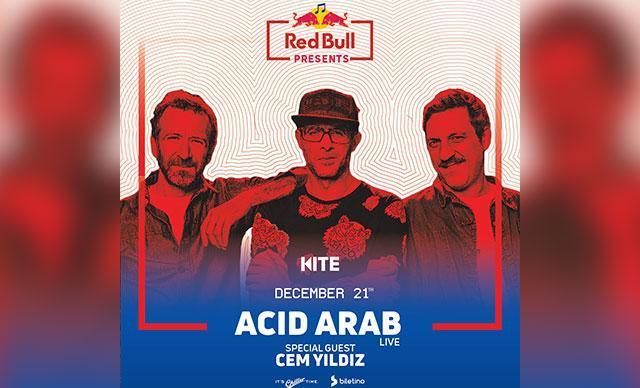Son 3 yılda 50 ülkede 260’tan fazla lokasyonda seyirci ile buluşan Parisli elektronik müzik grubu Acid Arab, Cem Yıldız birlikte Red Bull ve Kite iş birliğiyle performans gösterecek. Müzik yolculuklarına Ortadoğu ezgilerini çeşitli techno ve elektronik altyapılarla yorumlayarak, Türkiye dahil birçok ülkede beğeni toplayan Acid Arab, 21 Aralık Cumartesi akşamı Ankaralı müzikseverlerle buluşacak. Parisli elektronik müzik grubu Acid Arab'ın Fransız DJ'leri Guido Minisky ve Hervé Carvalho, geçen yıl Cem Yıldız ile birlikte ortak çalışmaları olan 'stil' ile Türk müzikseverlerden yoğun ilgi gördü. Acid Arab ile Cem Yıldız, birçok başarılı çalışmasıyla Başkentliler için performans sergileyecek. Ayrıca, Red Bull iş birliğiyle Kite'da gerçekleşecek olan gecede, Acid Arab 'Jdid' adlı yeni albümünü de Türk müzikseverler için ilk kez çalacak.
