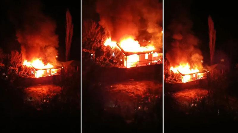 Adana'nın Saimbeyli ilçesinde tek katlı müstakil ev, çıkan yangında küle döndü.