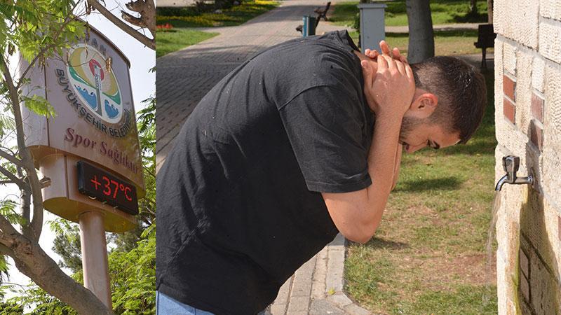 Adana'da mayıs ayının ortasında kent merkezindeki termometreler 37 dereceyi gösterdi, sıcakta bunalanlar parklara koştu.