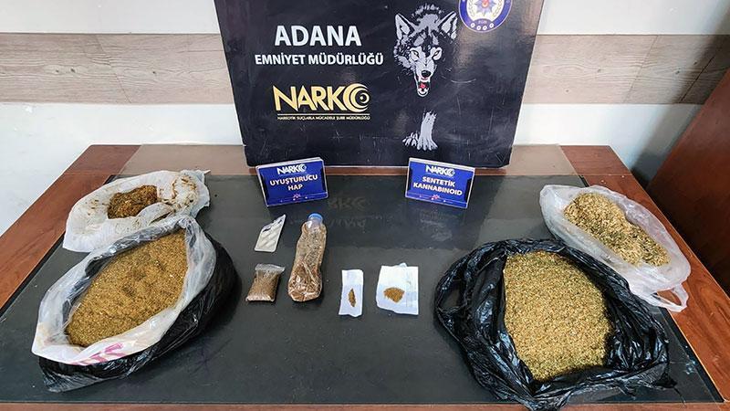 İl Emniyet Müdürlüğü Narkotik Suçlarla Mücadele Şubesi ekipleri, ‘torbacı’ olarak bilinen uyuşturucu satıcılarına yönelik çalışma yaptı. Ekipler, Seyhan ve Çukurova ilçelerinde uyuşturucu sattığı belirlenen Murat Koray Ç., Bilal E. ve Uğur A.’nın adreslerine baskın yaptı. Adreslerde yapılan aramalarda 1507,25 gram bonzai, 23,14 gram metamfetamin, 1,68 gram esrar, 0,38 gram eroin, 9 uyuşturucu hap, ruhsatsız 2 tabanca, pompalı tüfek ve hassas terazi ele geçirildi. Gözaltına alınan şüpheliler, çıkarıldıkları mahkemece tutuklandı.