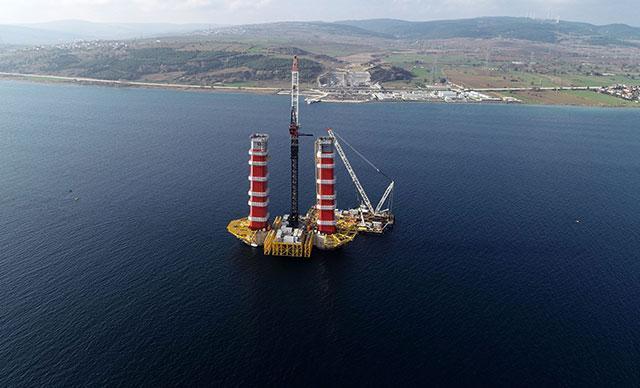 Denize batırılan kesonlar üzerindeki kule kurulumunun alçak kısımlarına bloklar yüzer vinç yardımıyla konuldu. 6'ncı bloklardan sonra bağ kirişi üzerine monte edilen tırmanan vinç yardımıyla panel şeklinde 7'nci blokların montajı tamamlandı. Tüm blokların konulmasının ardından Türk bayrağının renklerini alacak, 318 metrelik köprü kuleleri tamamlanacak. Kulelerin üst kısmı da Seyit Onbaşı'nın Çanakkale Savaşı'nda namluya sürdüğü top mermisini temsil edecek şekilde olacak.