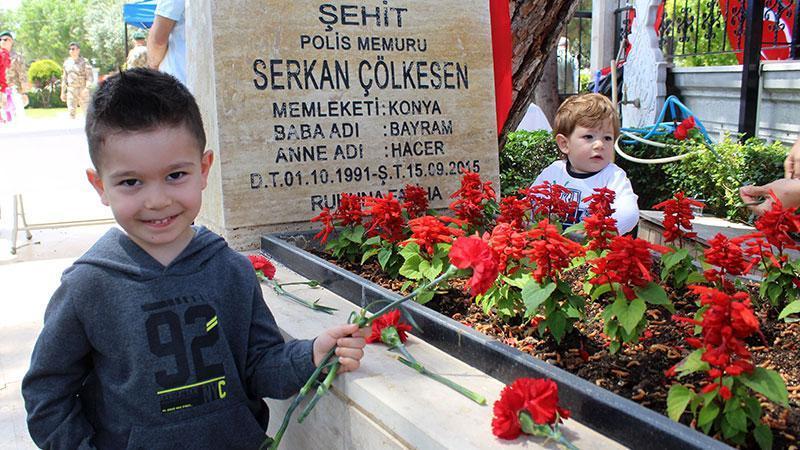 2015 yılında şehit olan Serkan Çölkesen'in ailesi de İl Emniyet Müdürlüğü'nün düzenlediği programa katıldı. Şehidin ablası Bağdat Çölkesen Kılınç, şehit kardeşinin adını yaşatmak için büyük oğluna onun adını verdiğini anlattı. Şehit dayısı Serkan Çölkesen için şehitlikteki programda dua eden Serkan Kılınç ve 2 yaşındaki kardeşi Furkan'a, İl Emniyet Müdürü Mehmet Murat Ulucan hediye ve bayram harçlığı verdi. Dua okunmasının ardından şehitlikteki tüm mezarlara karanfil bırakıldı. Serkan Kılınç ise şehit dayısının mezarını sulayıp karanfil bıraktı.