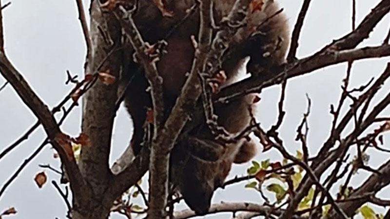 Ağaca çıkan yavru ayı mahsur kaldı