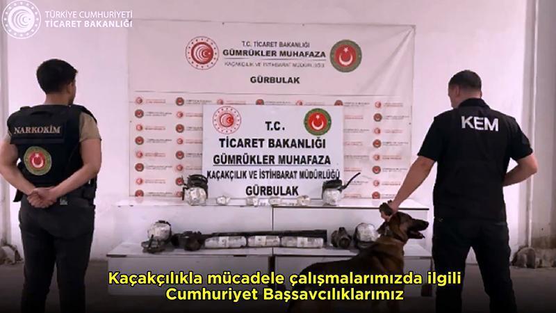 Bakanlığın sosyal medya hesabından yapılan açıklamada, "Ticaret Bakanlığı, ailenin, gençlerimizin, vatandaşlarımızın zararlı unsurlardan korunması, her türlü bağımlılığa karşı mücadele etmek ve yasa dışı ticareti engellemek amacıyla kaçakçılıkla mücadele çalışmalarını aralıksız sürdürüyor. Ticaret Bakanlığı Gümrükler Muhafaza Kaçakçılık ve İstihbarat birimlerince, son dönemde gerçekleştirilen operasyonlarda; Ağrı-Gürbulak Gümrük Kapısı'nda 1 milyar 805 milyon Türk lirası değerinde yaklaşık 1 ton uyuşturucu madde, Edirne-Kapıkule Gümrük Kapısı'nda 48 milyon 622 bin Türk lirası değerinde 284 bin elektronik sigara, İstanbul Sabiha Gökçen Havalimanı'nda 15 milyon 701 bin Türk lirası değerinde yaklaşık 26 kilo uyuşturucu madde, Antalya Limanı'nda 1 milyon 430 bin Türk Lirası değerinde 43 bin 108 metrik ton akaryakıt cinsi eşya ele geçirildi" denildi.