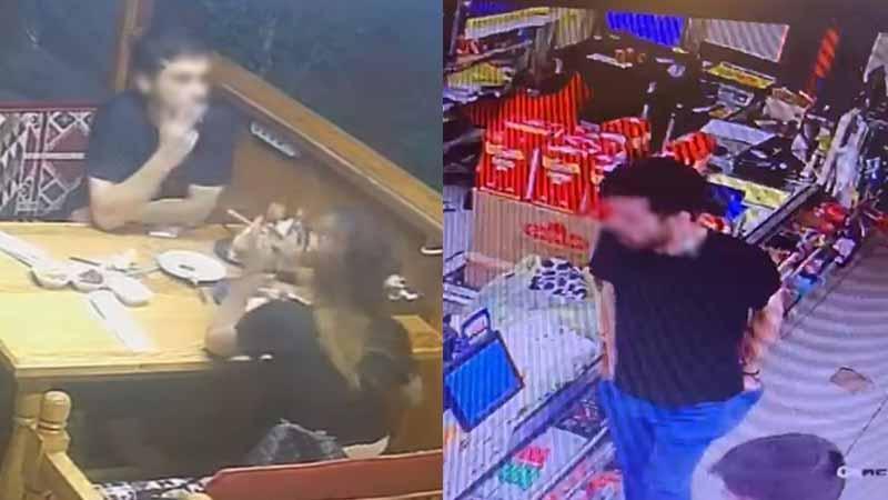 Bursa'da, eşi ve çocuğuyla gelip, yemek yediği restoranda, ‘Kartımı arabada unuttum’ diyerek kaçan şüpheli, ardından girdiği bir marketten de sigara çaldı. O anlar iş yerlerinin güvenlik kamerasına yansıdı.