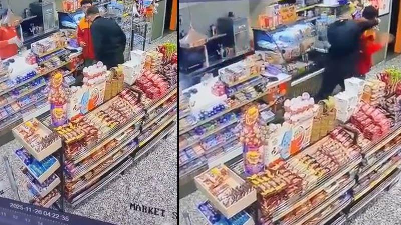 Akaryakıt istasyonu çalışanına kafa atıp, yumrukladı; o anlar kamerada