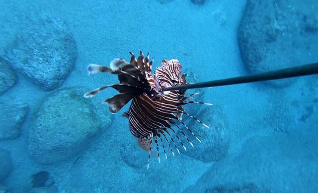 Önceki günlerde Antalya Kemer'de sık sık dalış yapan ve bu dalışlara ait görüntüleri YouTube kanalında paylaşan dalgıç Çağdaş Özsarı, daha önce yine göçmen ve zehirli bir tür olan balon balığının elini ısırması nedeniyle bir süre sıcak su kaynatarak parmağına pansuman yaptıktan sonra acısı dinmeyince hastaneye gitti. Aslan balığını avladığı ve acı çektiği anları görüntüleyen Özsarı, "Çekimler sırasında yemek için vurduğum aslan balığının dikenlerini kesmek için tutarken parmağıma battı. Parmağım diğer parmağımın iki katına yakın şişti. Çekime devam edecekken acıdan dolayı duramadım ve hastaneye gitmek zorunda kaldım" dedi.
