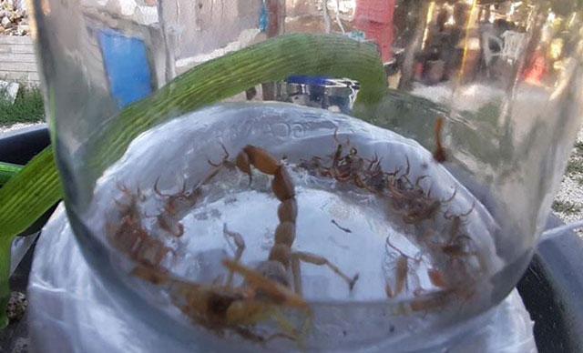Akrep kavanozda 37 yavru dünyaya getirdi