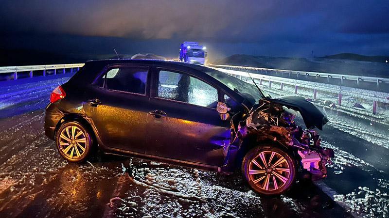 Kaza, dün saat 19.30 sıralarında Niğde-Ankara Otoyolu Gülağaç ilçesi yakınlarında meydana geldi. Dolu yağışı nedeniyle kayganlaşan yolda Abdülkadir İbiş'in (50) kontrolünü yitirdiği 35 BHY 171 otomobil, bariyerlere çarptı. Arkasından gelen Selman Yeniocak'ın (40) kullandığı 31 GY 036 plakalı otomobil de İbiş'in otomobiline çarptı. Kazada sürücü Abdülkadir İbiş ile yanındaki Şahinden İbiş (48), diğer sürücü Selman Yeniocak, yanındaki Hüseyin Eskiocak (41) ve Furkan Eskiocak (13) yaralandı. Çevredekilerin ihbarıyla kaza yerine jandarma, sağlık ve itfaiye ekibi sevk edildi. Yaralılar ambulanslarla Aksaray Eğitim ve Araştırma Hastanesi'ne kaldırıldı. Kazaya ilişkin soruşturma başlatıldı.