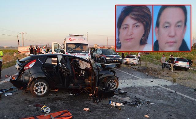 Aksaray'da 3 aracın karıştığı zincirleme kazada Almanya'da yaşayan Ali İhsan Çomuk (55) ve eşi Elmas Çomuk (56) öldü, 6 kişi yaralandı.