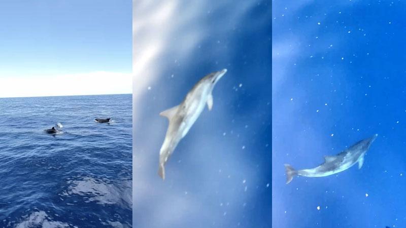 Antalya'nın Alanya ilçesinde denizde tura çıkan turistler bir süre tekneye eşlik eden yunusları ilgiyle izledi.
