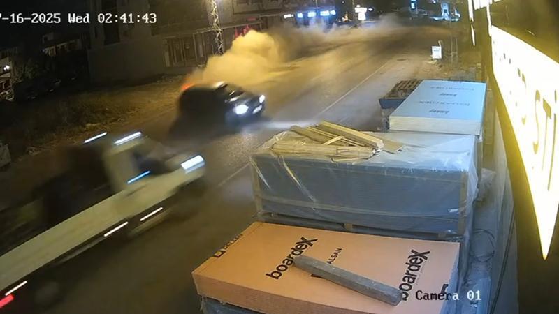 Alkollü sürücünün kontrolünü kaybettiği otomobil, kamyonetle çarpıştı; kaza kamerada