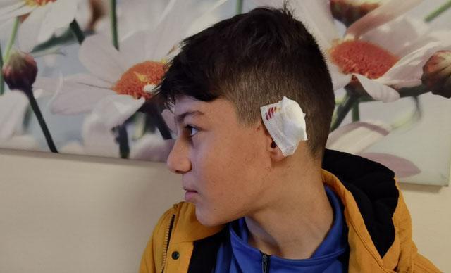 Alman çoban köpeğinin saldırdığı Yusuf'un kulağında doku kaybı var