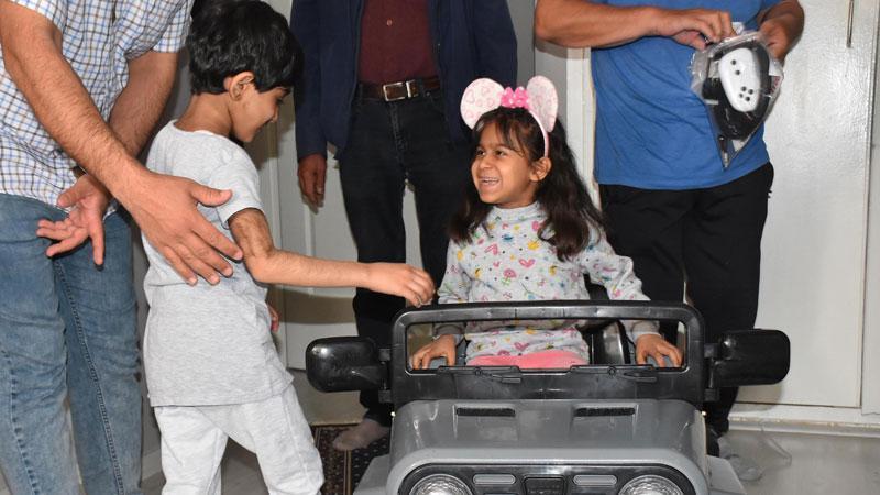 Bayramda kızlarının tedavisi için evlerinden ayrı olacaklarını ifade eden Şerife Eren, "İzmir'e geleli 8 ay oldu. İzmir Hasta Çocuk Evleri Derneği'nin evlerinde kalıyoruz. Akülü arabaya binmek çocuklarımızın hayaliydi ancak imkanımız olmadığı için alamamıştık. Sosyal medyada çocuklarımın bu istediğini paylaştık. Hediyenin geleceğini duyan kızlarım heyecandan uyuyamadı. Sürekli akülü arabanın ne zaman geleceğini sordular. Kızlarım adına emeği geçen herkese çok teşekkür ediyorum" ifadelerini kullandı.