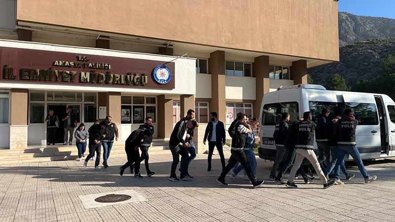 Operasyon kapsamında yapılan aramalarda; 989,99 gram uyuşturucu madde olduğu değerlendirilen sıvı, 561 adet sentetik ecza, 97,76 gram bonzai hammaddesi emdirilmiş tütün, 42,54 gram aseton ile çözeltilmiş bonzai hammaddesi, 21,68 gram metamfetamin, 4,45 gram bonzai hammaddesi, 2 ruhsatsız tüfek, 55 adet 9,19 mm çapında fişek ve 1 kurusıkı tabanca ele geçirildi. Operasyonda H.C.D., M.S., A.B.K., A.Ç., R.K., A.Ş., E.C., H.Y. ve E.Ç. gözaltına alındı. Emniyetteki işlemleri tamamlanan şüpheliler, dün sevk edildikleri mahkemece tutuklandı.
