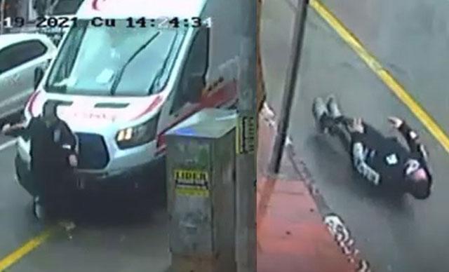 Manisa'da, ambulansın çarptığı 'Komiser Şefik' lakaplı down sendromlu Şefik Aslan (30), yaralanarak, hastaneye kaldırıldı. Kaza anı ise bir iş yerinin güvenlik kamerasına yansıdı.