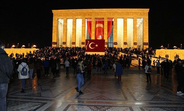 Ulu Önder Mustafa Kemal Atatürk'ün vefatının 83'üncü yılında Ata'nın istirahatgahı Anıtkabir, gece de ziyaretçi akınına uğradı.