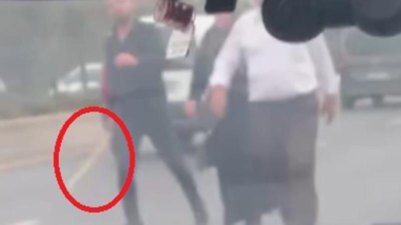 E.Ç.’nin sopayla trafiği tehlikeye attığı anlar ise diğer sürücüler tarafından kaydedildi.