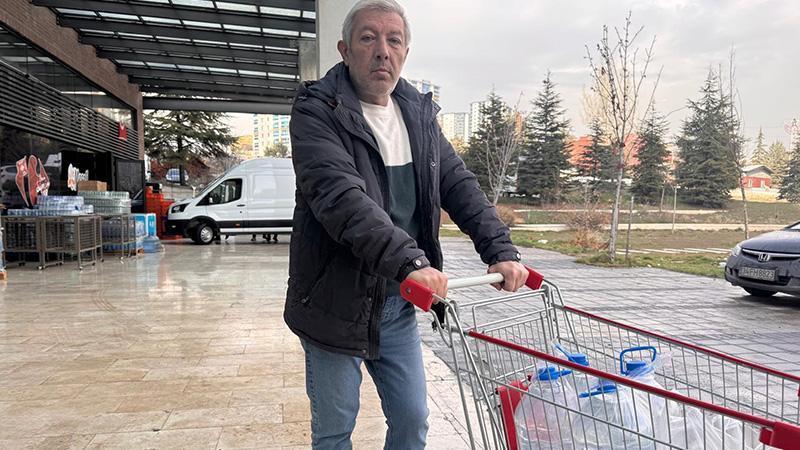 Ankara'da su şebekesindeki basınç düşüklüğü nedeniyle mağduriyet yaşayan vatandaşlar, evlerine marketlerden su satın alıyor.